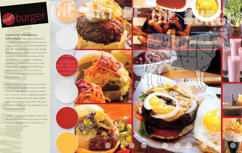 Design and layout for a print proposal for the concessions program at JFK airport terminal 4, for SSP America.