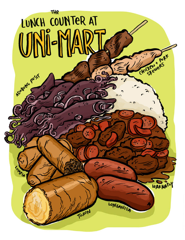 Some selections from my long-running minicomic, “I Think You’re Sauceome,” which focused on issues of food and self-worth. Topics included cooking, culinary diasporas, recipes, local restaurants, travelogues, and more. It updated 5-6 times a week from 2010-2013, and was essentially the beginning of my interest in food illustration as a career pursuit.