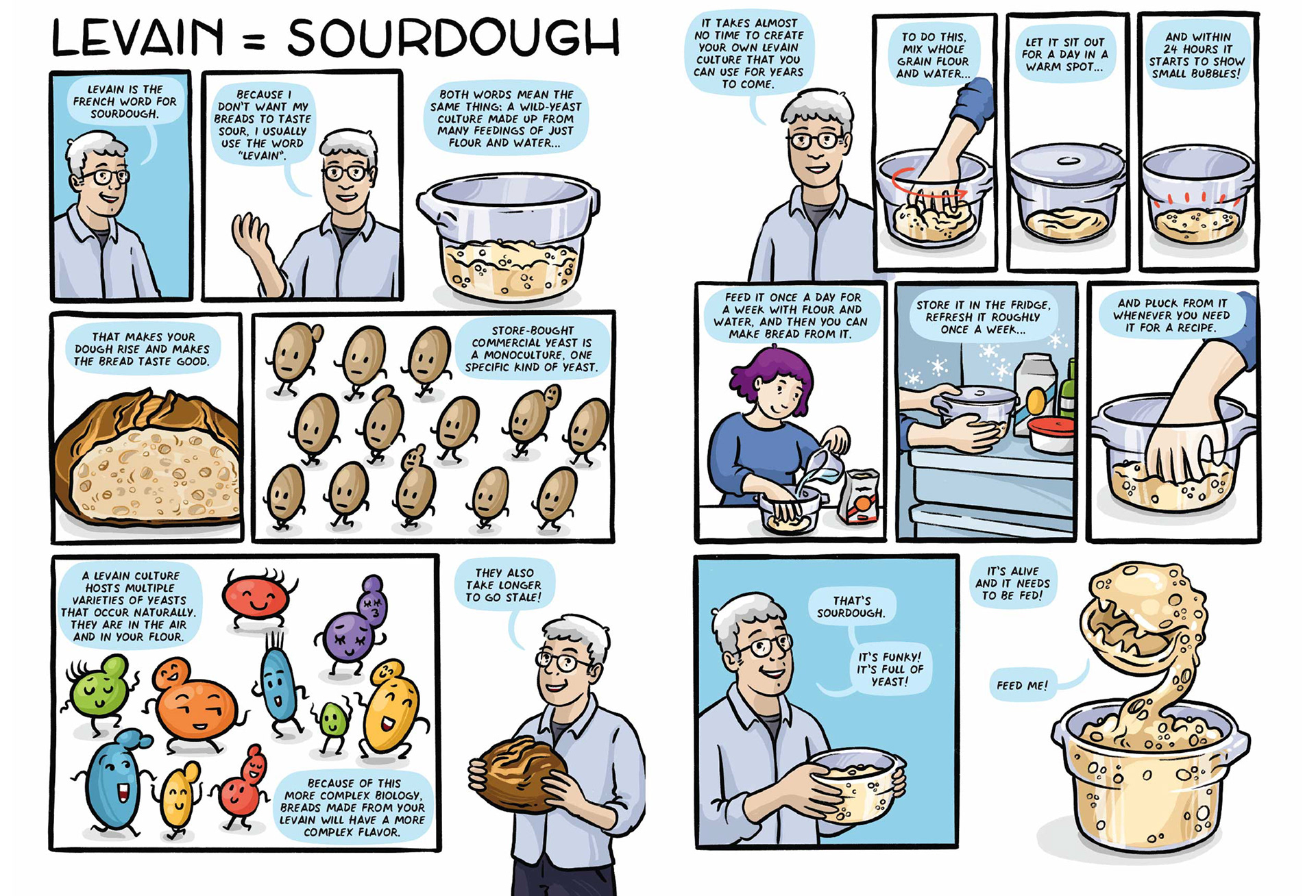 Published May 2024, by Ten Speed Graphic. An accessible and easy-to-follow comic book cookbook for baking delicious breads, featuring a basic universal method, guidelines for maintaining a sourdough starter, and recipes for classic loaves and fun new riffs, from the beloved author of Flour Water Salt Yeast, New York Times bestselling author Ken Forkish. With comics artist Sarah Becan’s lively and colorful illustrations, Let’s Make Bread! invites readers to embark on the journey of making bread with this new visual twist.