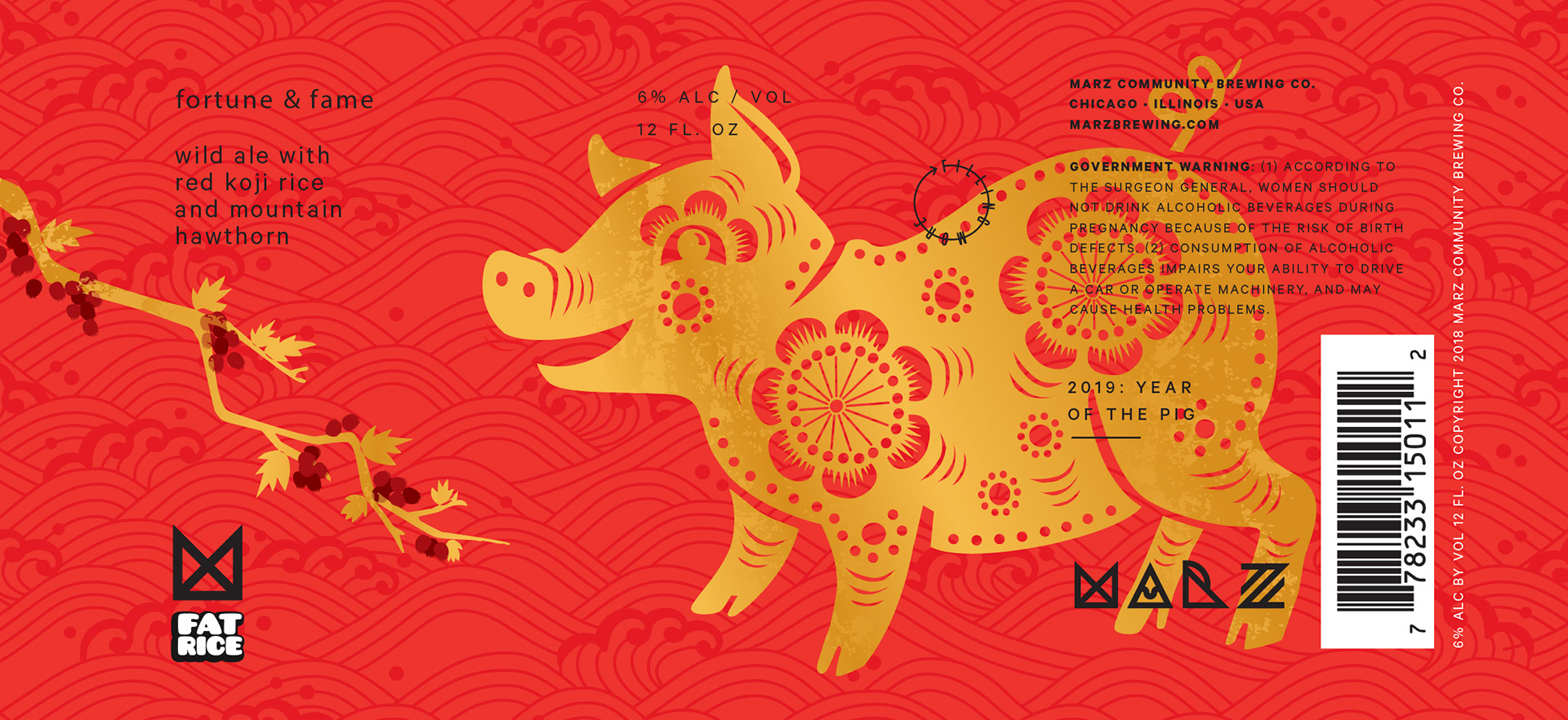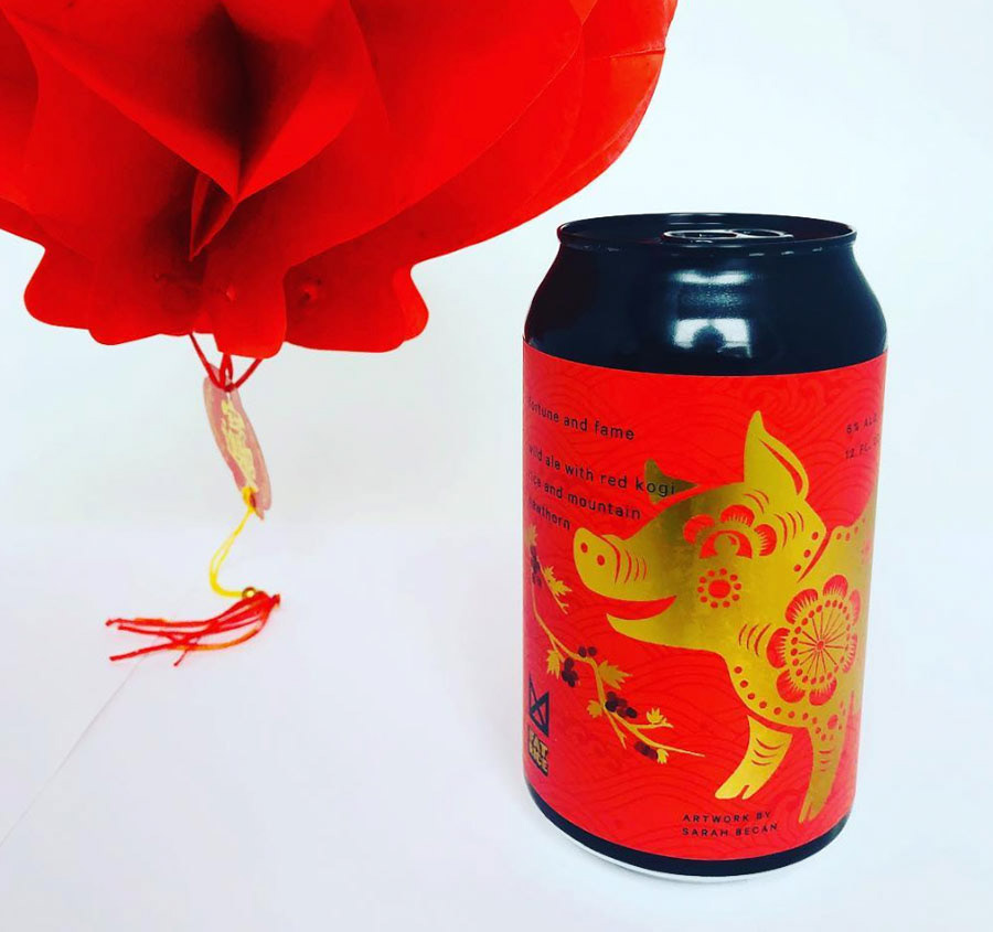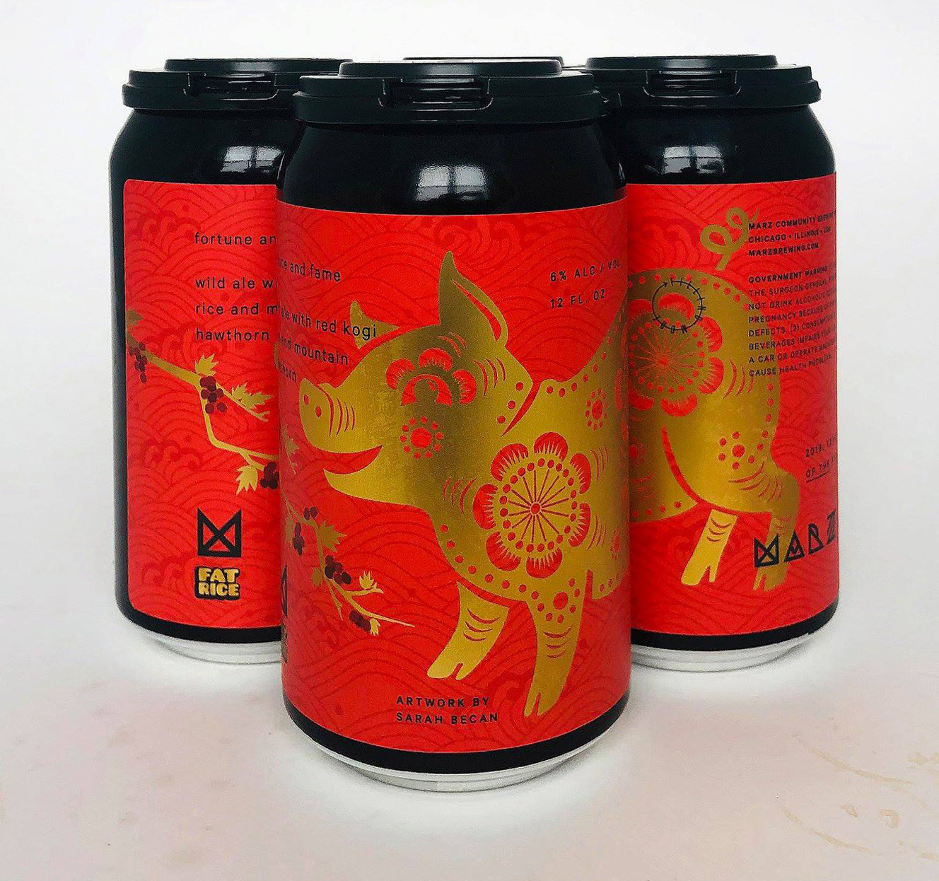 Illustration for a beer can label for a collaboration between Fat Rice and Marz Community Brewing, 2019.