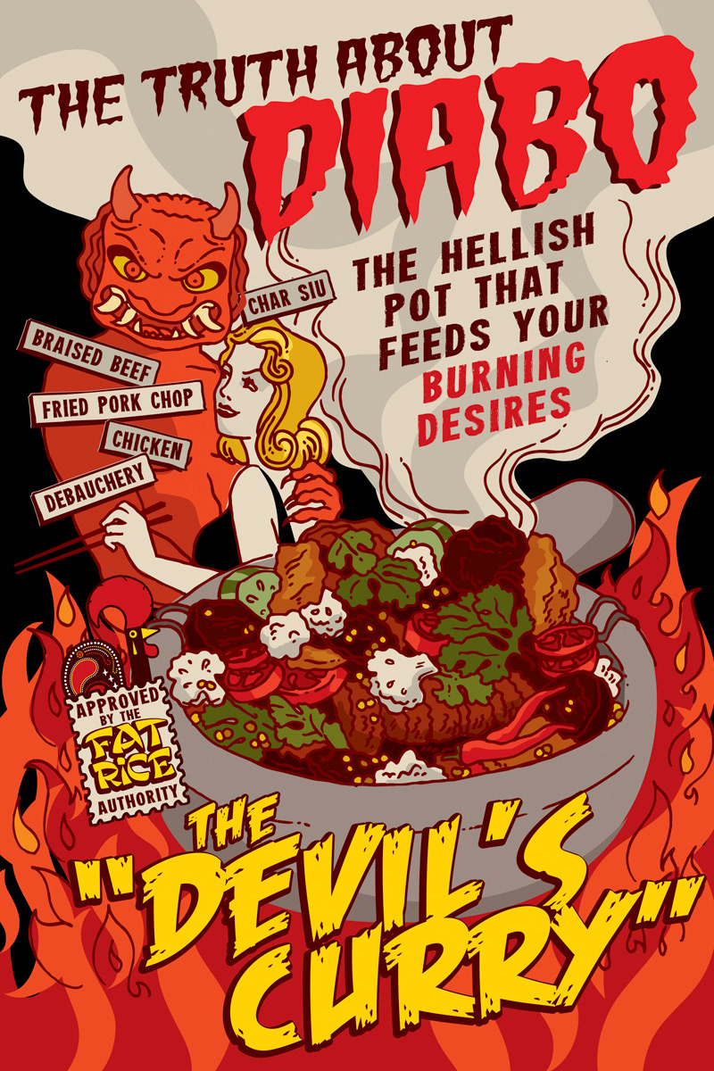 A series of posters for Chicago Restaurant Fat Rice, advertising new and seasonal dishes in some very fun ways.