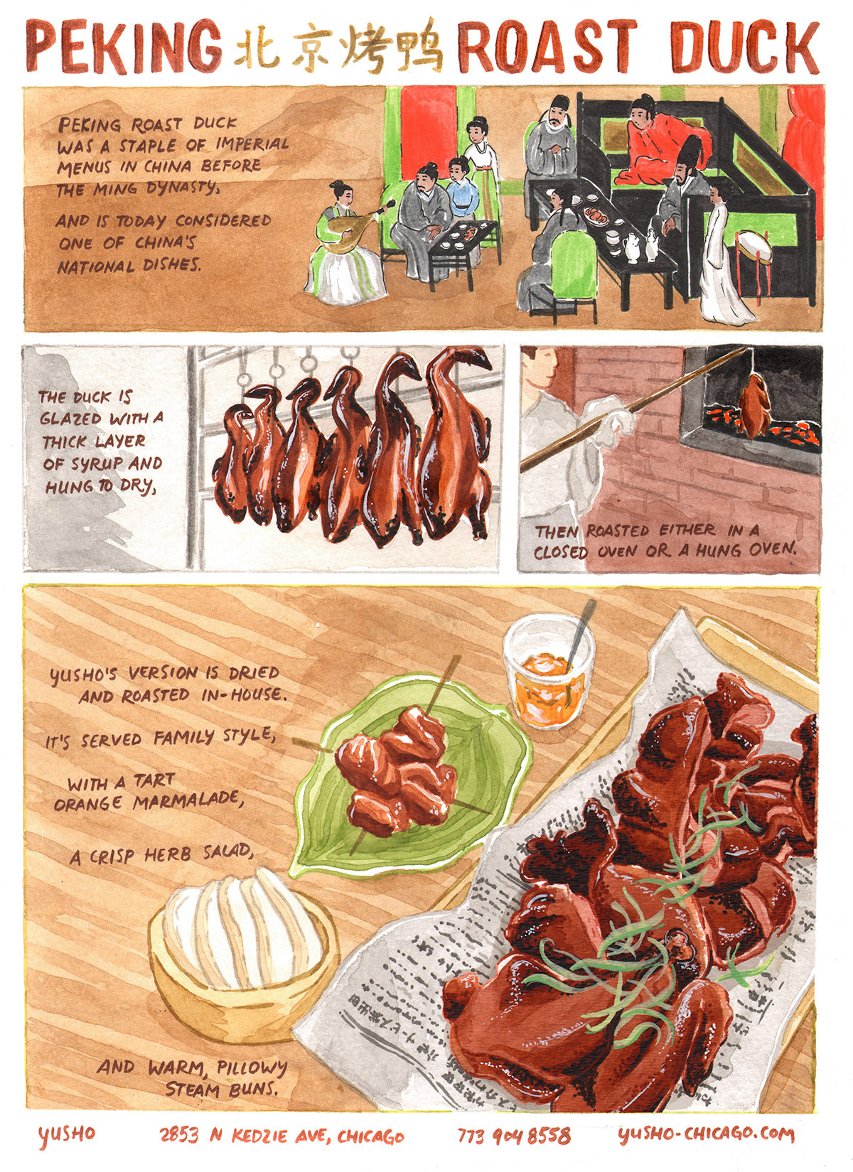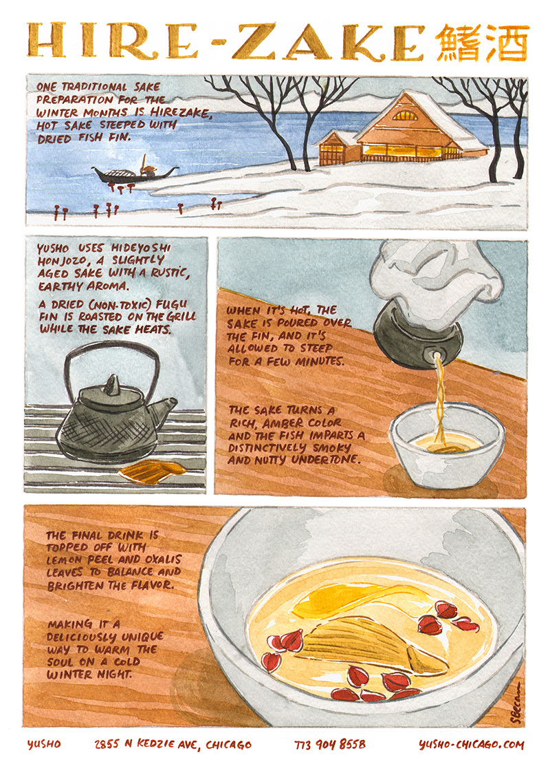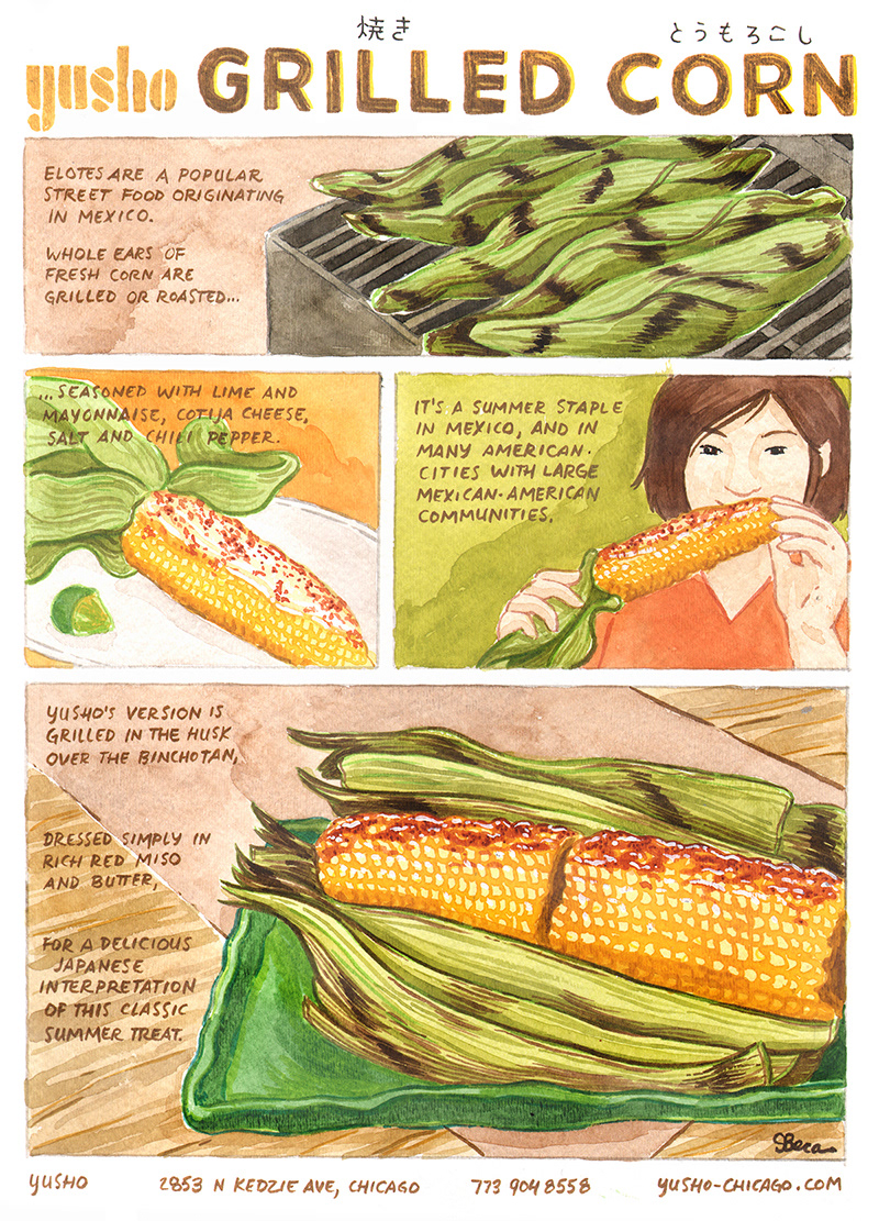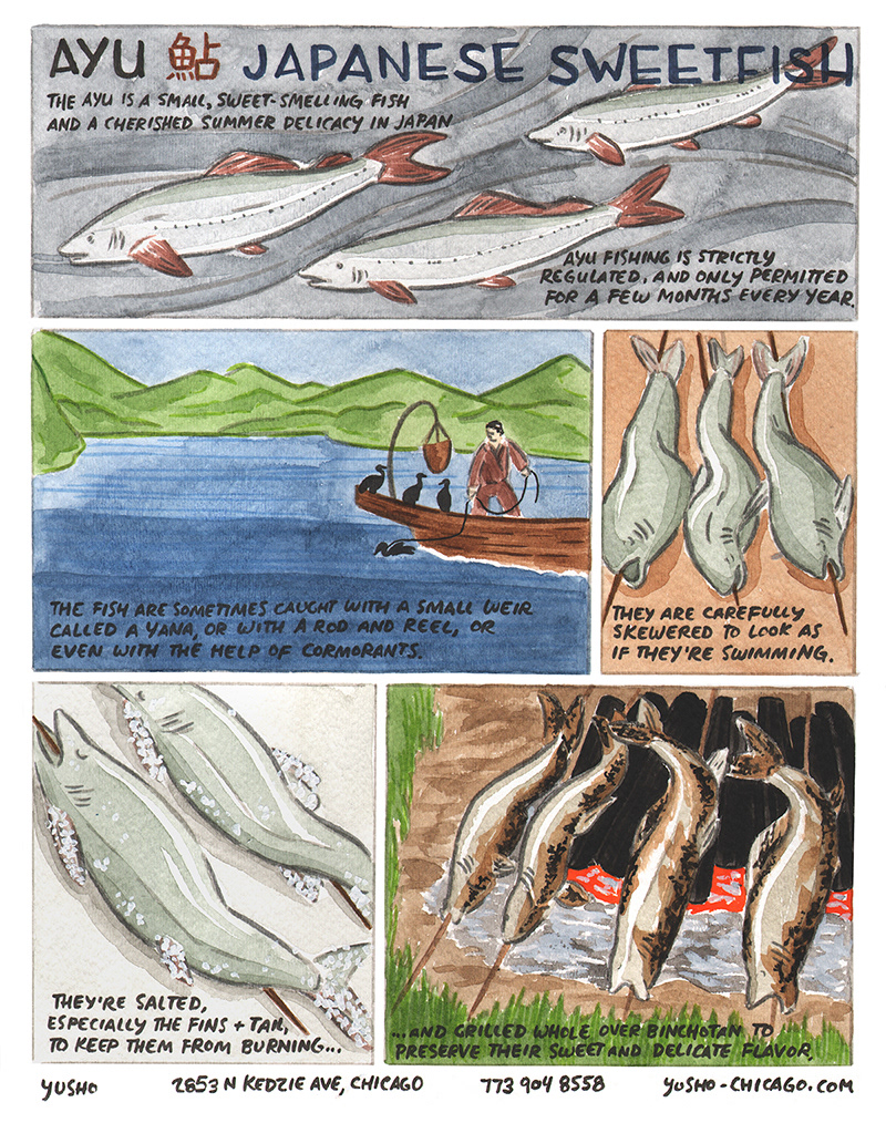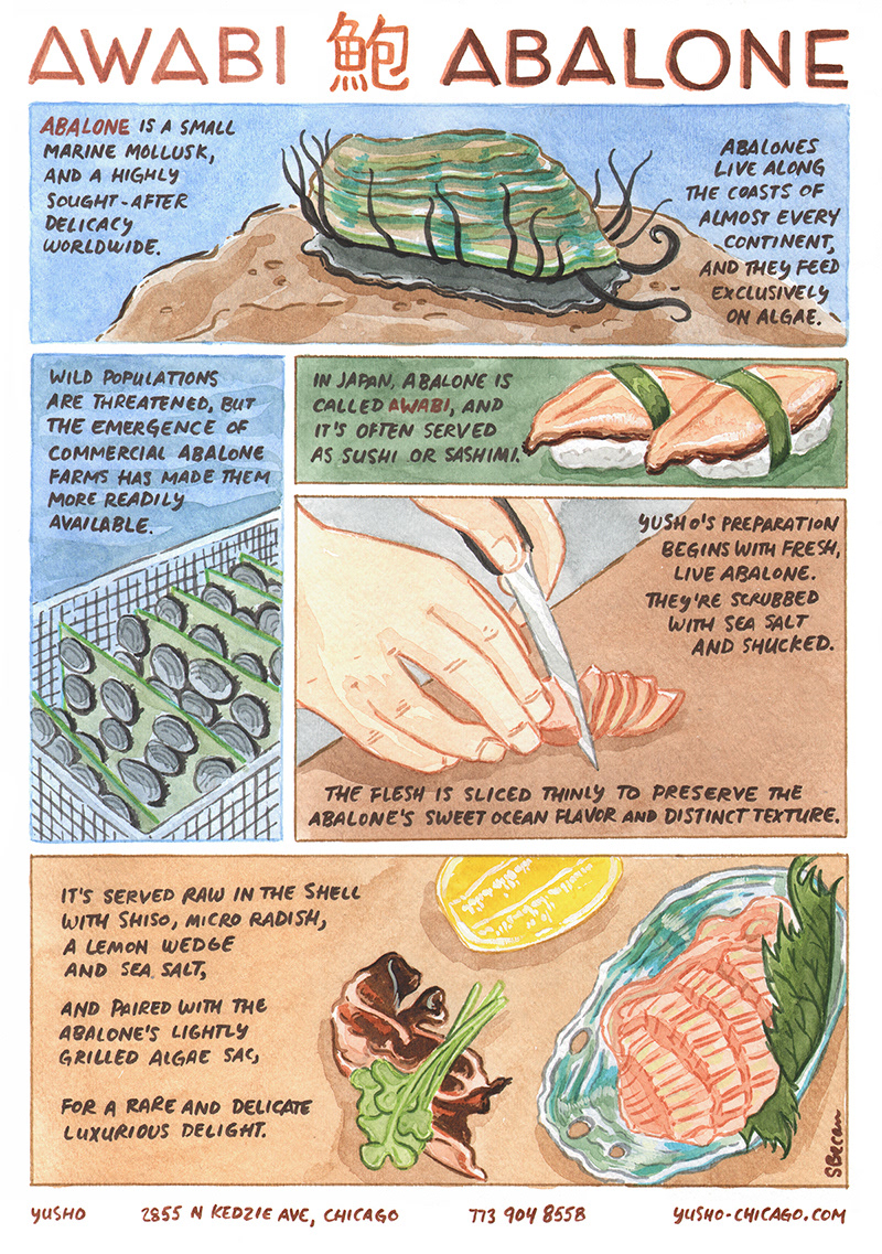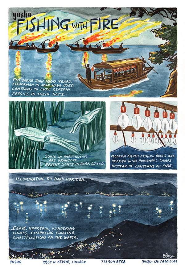 A series of several watercolor paintings for Chicago restaurant Yusho, intended to promote and demystify their seasonal dishes.
